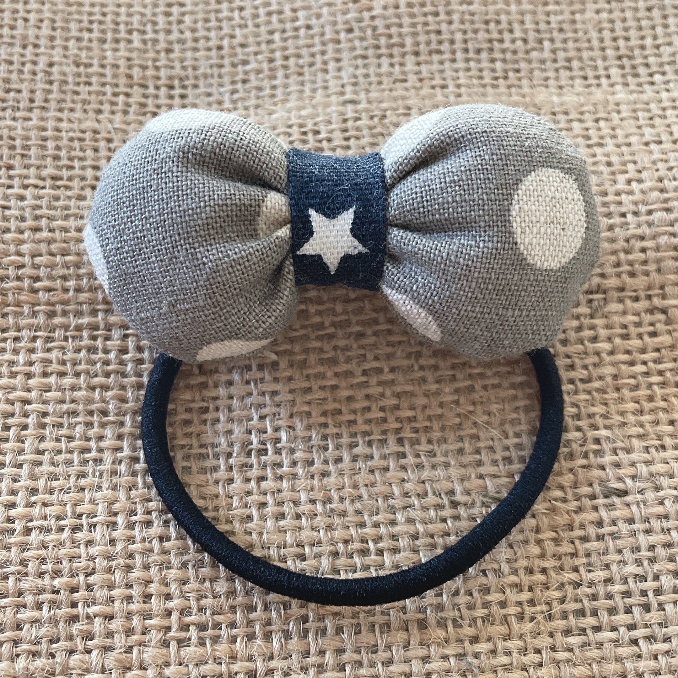 赤ちゃんから大人まで楽しめるヘアアクセサリー、まぁるいリボンのヘアゴムです。同じものは1つとなく1点ものです。